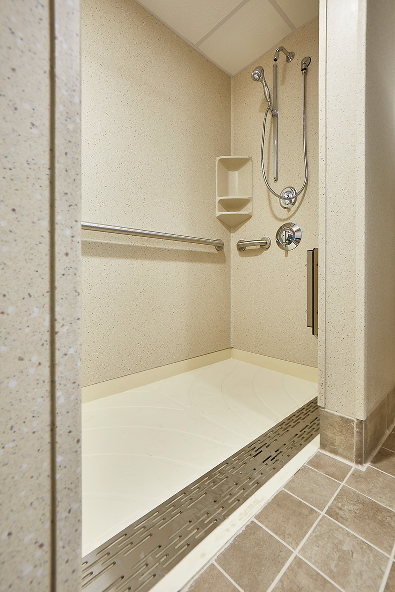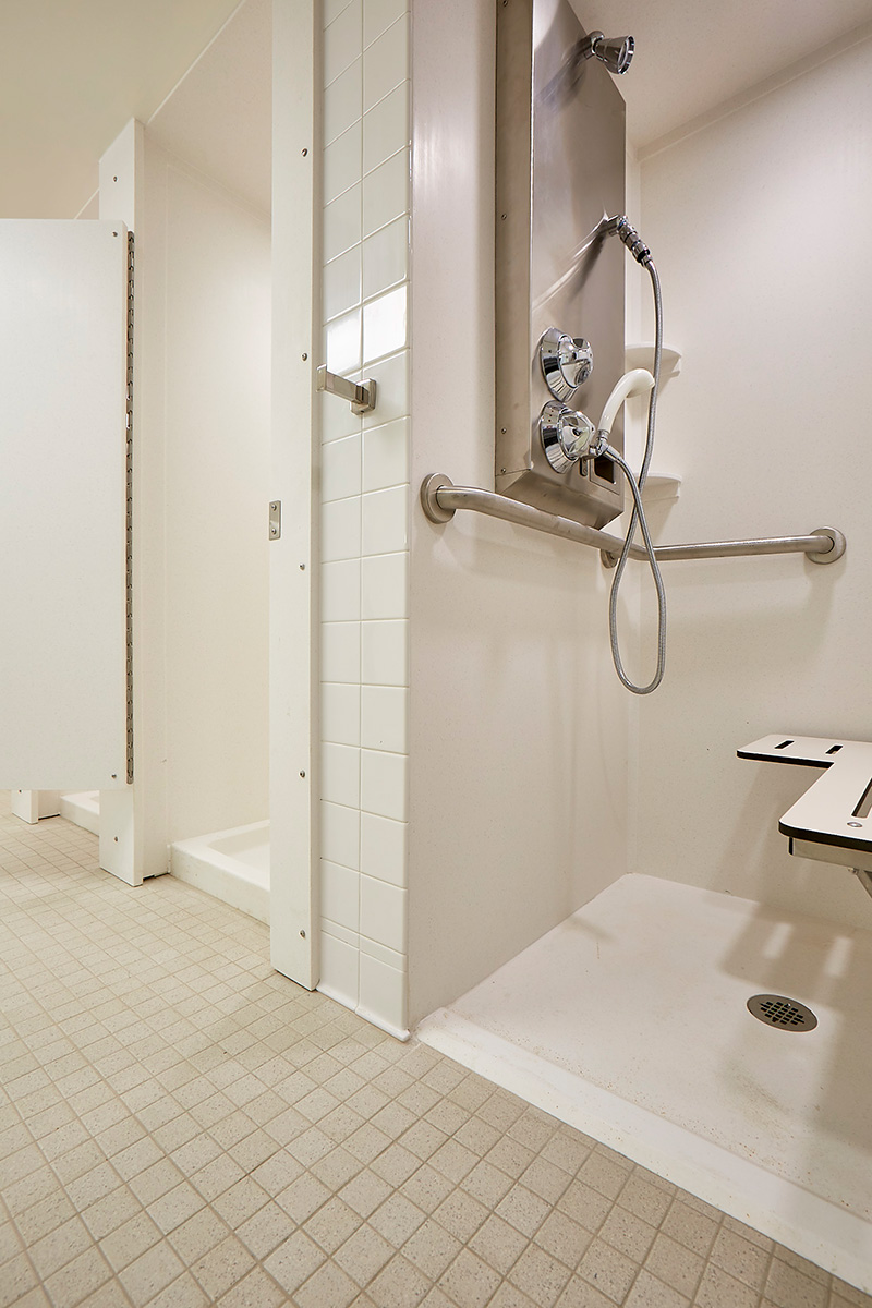 Many educational buildings include bathing facilities, whether a dormitory or a school with locker rooms. In general, bathing facilities must include at least one accessible shower. Be sure to check with the code in the project’s jurisdiction to ensure compliance.