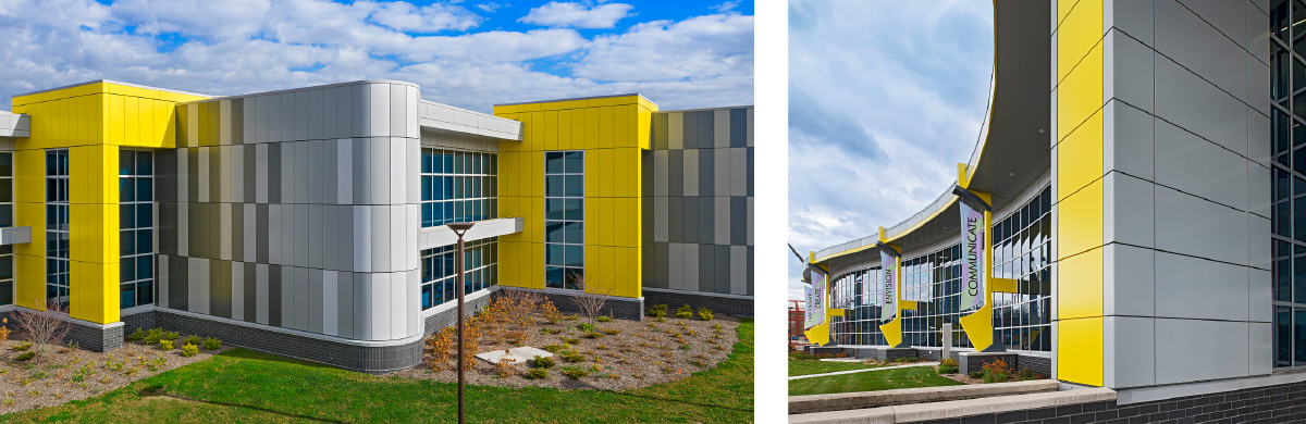 Additional design features include joint reveal widths, formed corner panels, end folds and treatments, heavier gauge flat facings, and integrated windows and louver systems. This long list of design options and flexibility empowers designers to create imaginative and functional designs to make a bold, colorful statement, match an organization’s brand, present a high-tech, innovative statement, and/or blend with surrounding architecture and style.