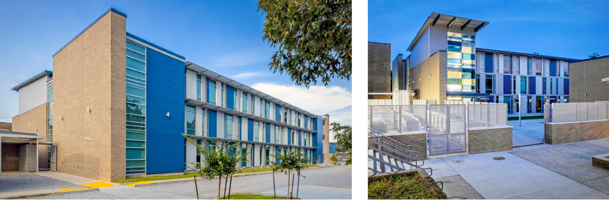 For the exterior skin of the new Children’s Hospital building in Atlanta, the project team massed the patient towers with sleek glass curtain walls and insulated metal panels (IMPs), incorporating curved corners and undulating awnings to blend with the site and aesthetics of the existing campus buildings.