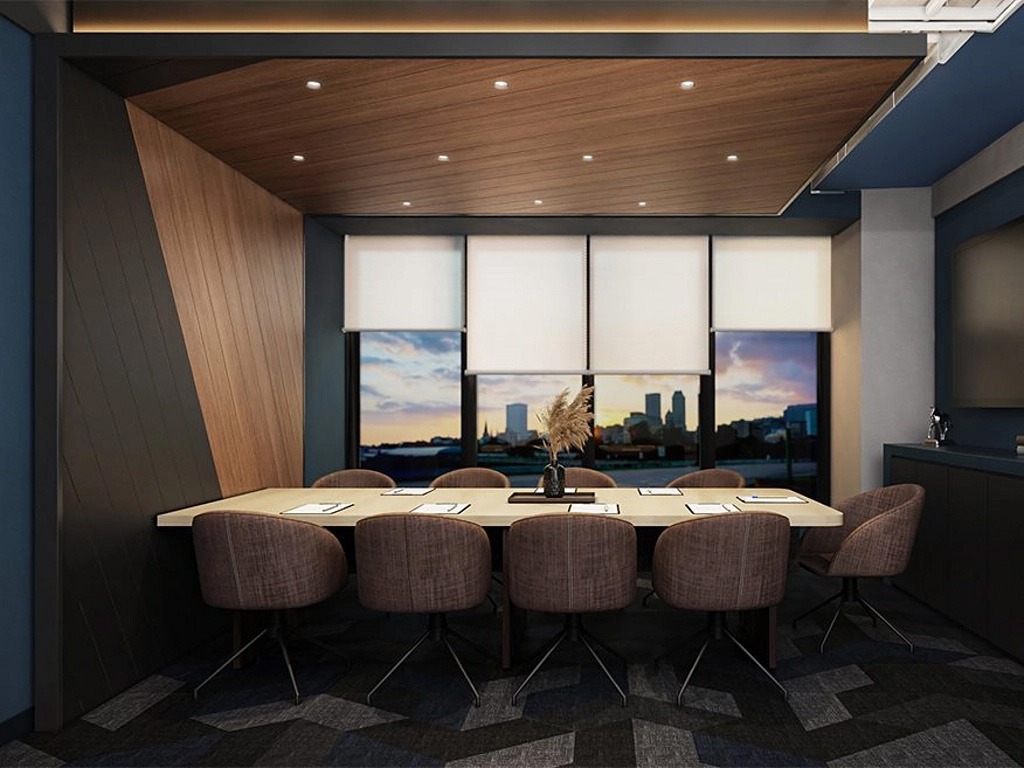Providing the optimal level of light means paying attention to floor, ceiling, and wall finishes and their relationship to lighting. Indirect lighting strategies, where light fixtures are placed to reflect off the ceiling, instead of directly down towards the floor, can diffuse glare. Task lights or local lighting can generate necessary light for workspaces while reducing ambient light levels in a larger space. Light diffusing finishes and filtering shades can harness the power of natural light while reducing its intensity. Ceiling panels that integrate backlighting offer seamless space lighting. Lighting programming in ceilings can be further programmed with precise color matching, allowing designers to select a single color or set a unique sequence of colors to create a one-of-a-kind backlighting experience. Texture and design options offer customization and generate the desired aesthetic.
