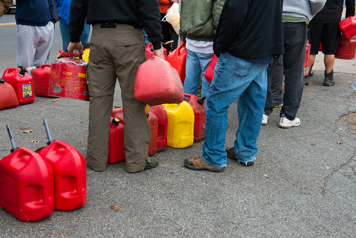 Residents wait in line to buy gasoline for generators before a hurricane. Propane eliminates the uncertainty of last-minute fuel runs by storing energy on site, ready when the grid fails.
