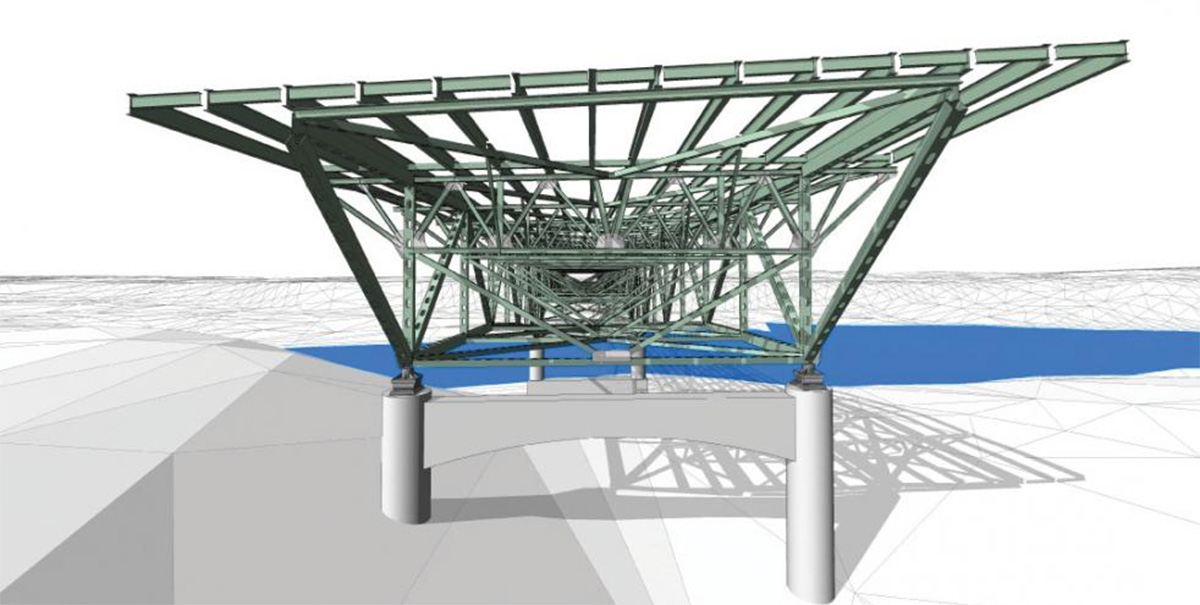 Hatfield’s experience in stadium and arena design, including Atlanta’s Mercedes-Benz Stadium (2016) at Happold, suggests that long-span construction offers appropriate opportunities for strain or deflection monitoring in steel trusses. In “anything that’s outdoors,” she says, particularly steel exposed to water and salts, “having smart steel would allow real-time monitoring of corrosion, stresses, [and] overstrains.... During construction, it can help the entire design team understand exactly how much something is deflecting, and how that affects pipes or ductwork that may not fit because you’ve got a tighter squeeze. Because you’re monitoring your steel, you know exactly where things are during construction; you can be tighter on the tolerances when you’re designing.” Sensors mounted on steel members to measure iron oxide can augment visual inspection, she adds, a potential boon to state departments of transportation. “Maybe the visual inspections are spaced out farther now, because you’ve got sensors inside the material that can do a better job than somebody going out and looking at something, because they can detect problems at a metallurgical scale... Maybe that even postpones the visual inspections of bridges,” particularly when combined with drone-based photography. “When we go look at things in stadiums, we’ll go up in the roof. We’ll walk around on the catwalks; I’ll take a pair of binoculars to see a connection that’s 80 feet away. Being able to use drones and have sensors in your steel makes understanding your structures and the life cycle of a structure potentially longer. There are green benefits: if you keep a structure in use longer, [making] repair decisions at the appropriate times, you can extend the lives of those structures.”
