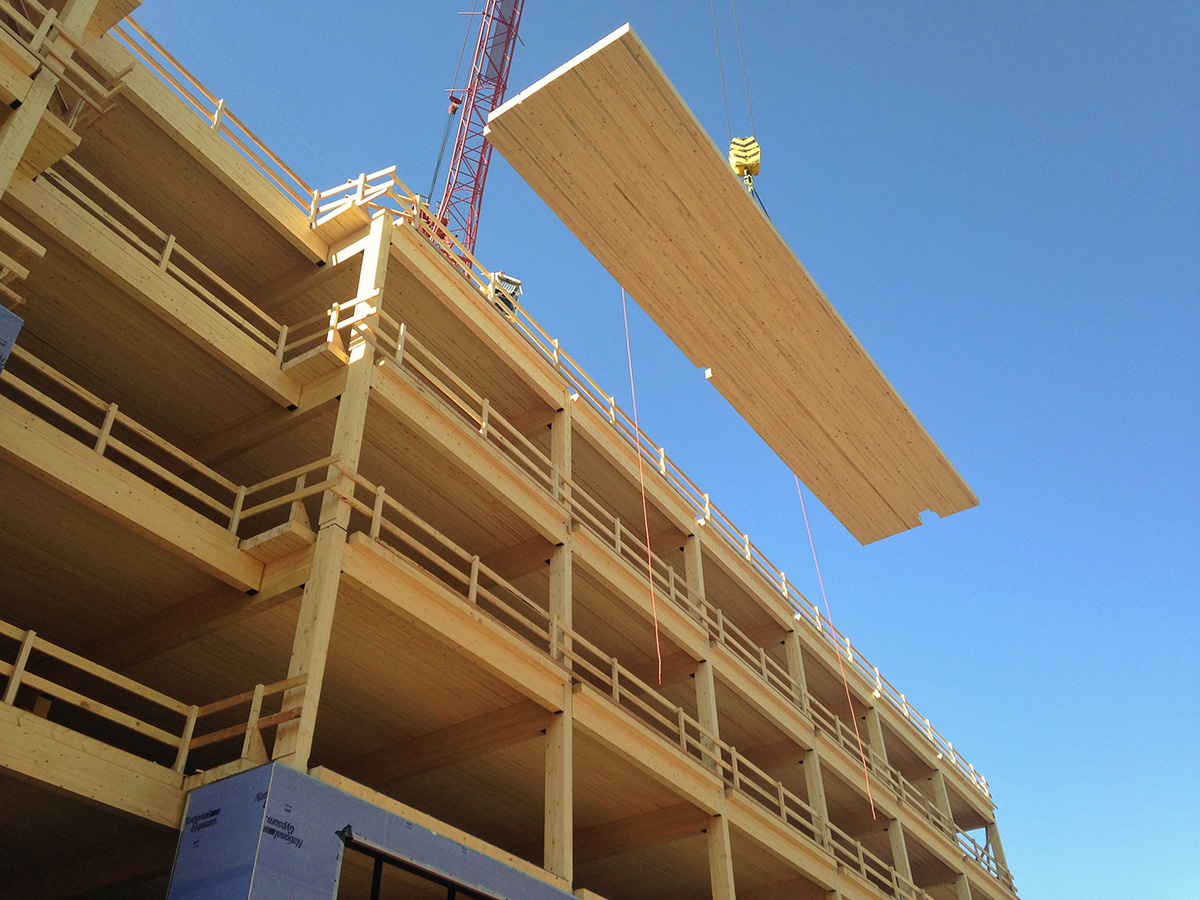 - On-site crane time can be reduced because of lighter weight of wood panels