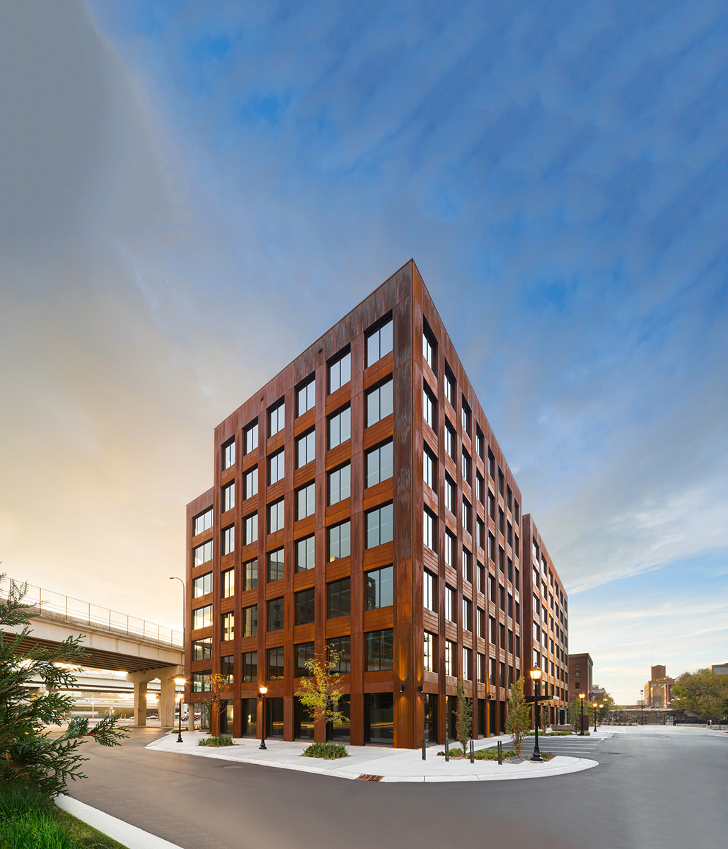 Project: T3 Minneapolis. Mass timber products’ light-weight advantage when compared to steel or concrete can often mean smaller foundations, helping to reduce a project’s overall cost and seismic loads. T3 is 30% lighter than its equivalent in steel would have been, and 60% lighter than post-tensioned concrete, according to engineer-led fabricator StructureCraft, which supplied mass timber for the project. Michael Green Architecture (MGA) served as the design architect, while DLR Group served as the agency of record.