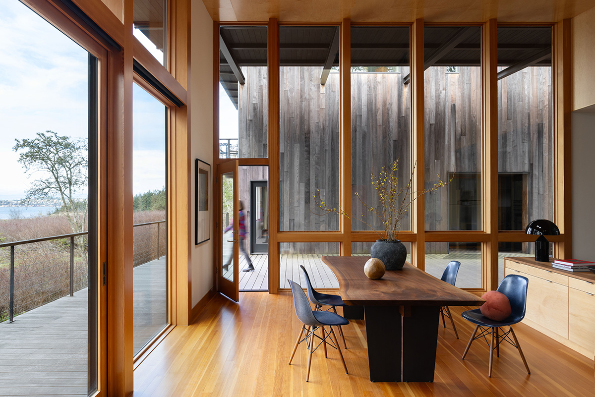 Many contemporary custom home designs include large, mulled assemblies that blur the line between indoors and outdoors.
