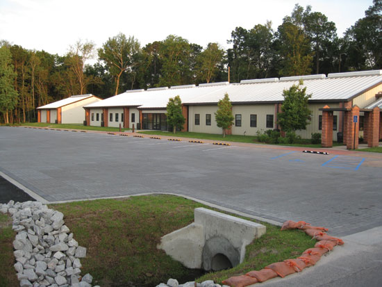 Responding to a presidential order that all federal buildings and sites conform to LEED Silver status during new construction or renovations, Fort Stewart, the largest Army installation east of the Mississippi River, included PICP as a part of its parking lot rehabilitation. This site accepts garbage trucks and delivery trucks and serves as the base’s test area for various green strategies. Fort Stewart has now completed phase II, with more than 100,000 square feet of PICP currently in use and the intention to employ the pavers basewide, including in a lot for a planned hospital. This PICP was able to contribute to both the LEED Recycled Content credit and the Regional Materials credit.