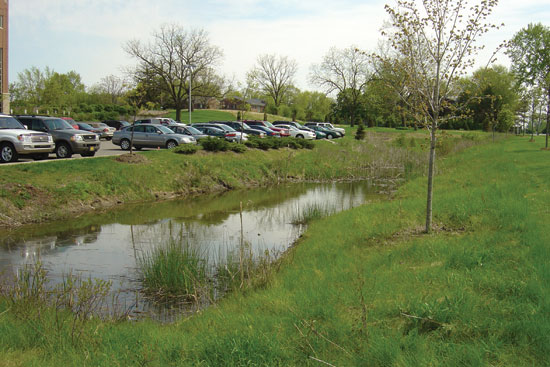 Common components of this method are impervious surfaces and retention ponds, both of which have their drawbacks. Traditional retention ponds use valuable surface area and have proven to be expensive to maintain, usually requiring draining and dredging. Impervious pavements have a high cost of maintenance, they transfer pollutants and sediment to sewers and waterways, and increase winter maintenance expenses, providing a poor life-cycle cost.